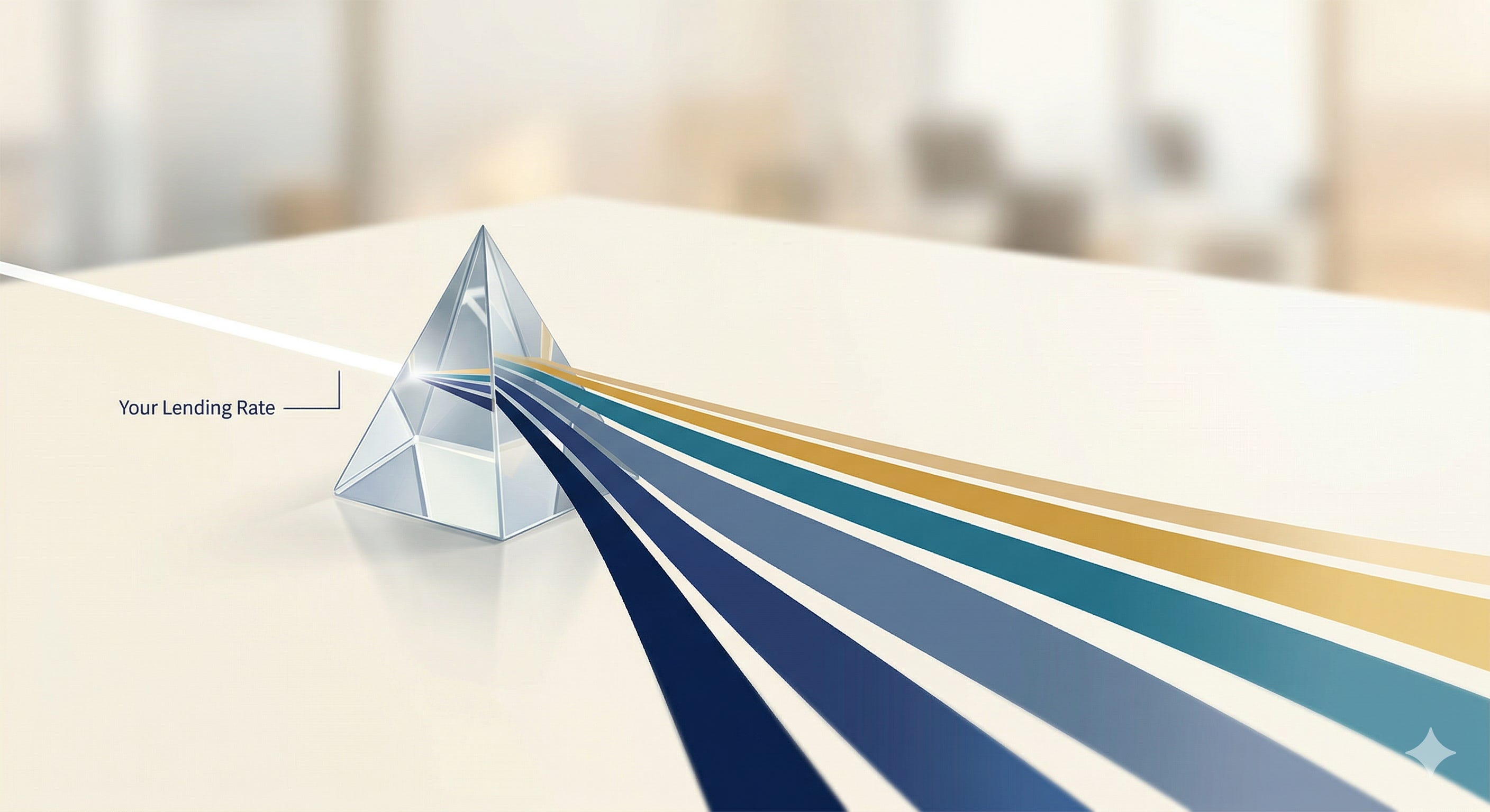Image: AI-generated illustration of a lending rate refracted through a prism into its component layers