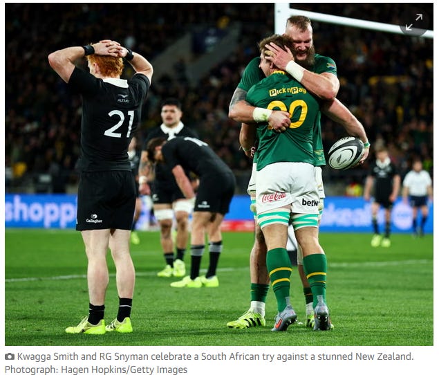 This morning in Nairobi, Wellington felt personal. 43-10. The number sat like a stone. The stadium grew quiet around it. At 22-10, I tried to look away, but the pattern kept tapping my shoulder. South Africa looked the better team again. They did not steal this. They built it, brick by brick, then blew the doors off after the break. It finished as New Zealand’s heaviest defeat, and it happened at home.