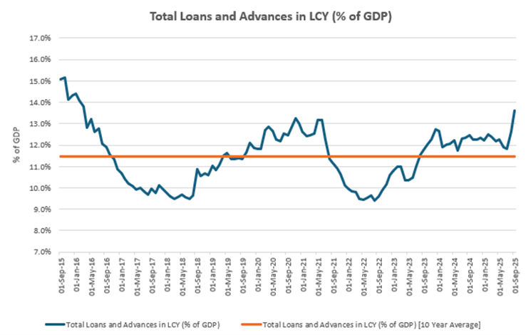FX volatility reshapes how banks manage balance sheet risk. Depreciation raises the kwacha value of foreign-currency liabilities and increases funding pressure, so banks preserve liquidity, shorten tenors, and widen risk premia. An appreciation reduces that pressure but does not trigger immediate easing, because banks loosen only when the currency strengthens on a sustained, flow-backed basis. The recent gains in the kwacha appear sentiment-driven rather than anchored in durable inflows, so banks are likely to maintain a defensive posture for longer. In both directions, banks respond more to currency risk rather than the policy stance, and this behaviour keeps lending conditions firm even when the central bank eases.