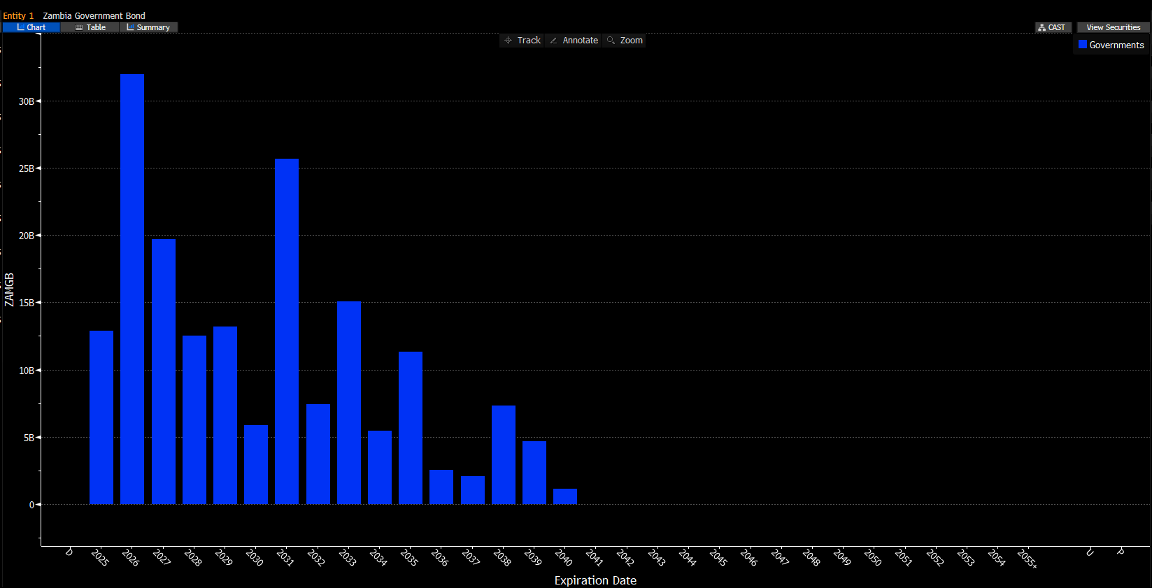 Zambia continues to face acute debt stress on both external and domestic fronts. In 2026, domestic bond maturities currently stand at ZMW 31.955 billion. As of May, Treasury Bills add another ZMW 14.663 billion to the rollover burden, and this figure will likely rise with continued issuance in 2025.